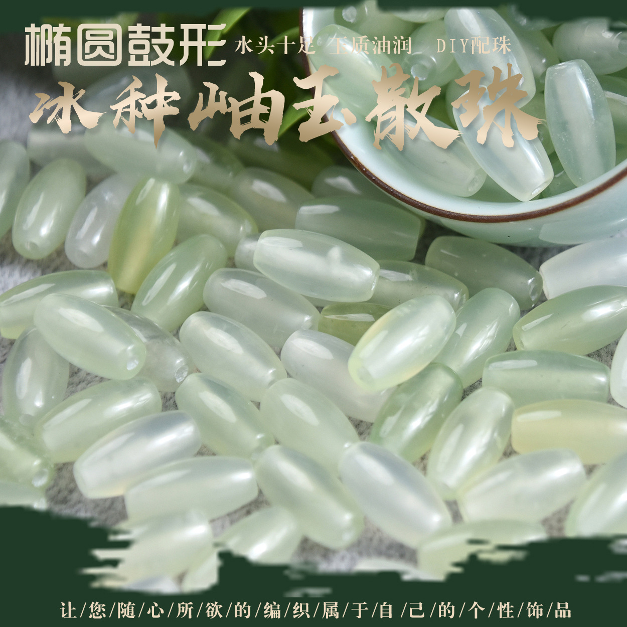 厂家销售 岫玉玉珠子椭圆玉珠 编织手链挂件绳 冰种玉石串珠 散珠