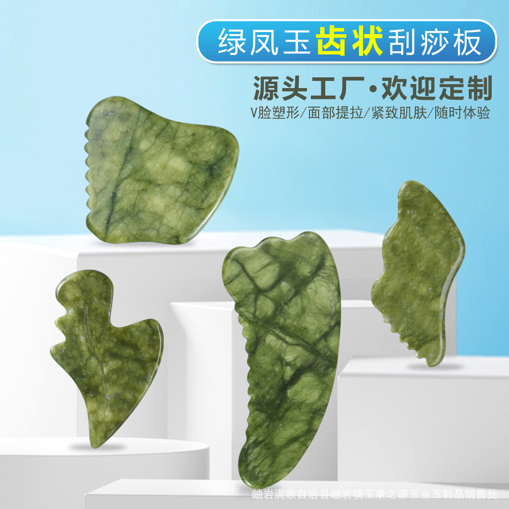 厂家销售 岫玉痧板 绿凤玉刮痧板 多种形状齿形玉石刮痧板美容