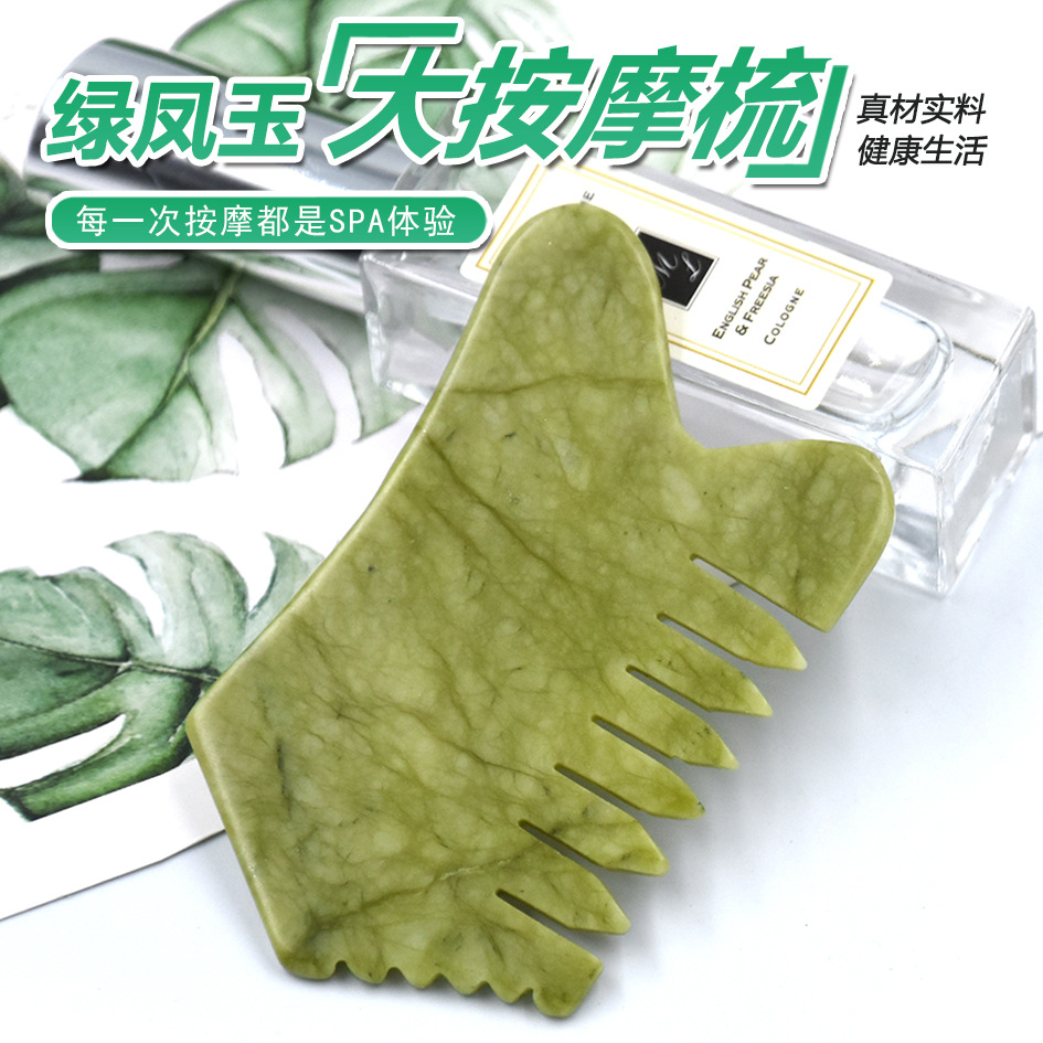 厂家销售 玉石梳子 绿凤玉小按摩梳岫玉梳 养发头部按摩 梳理发质