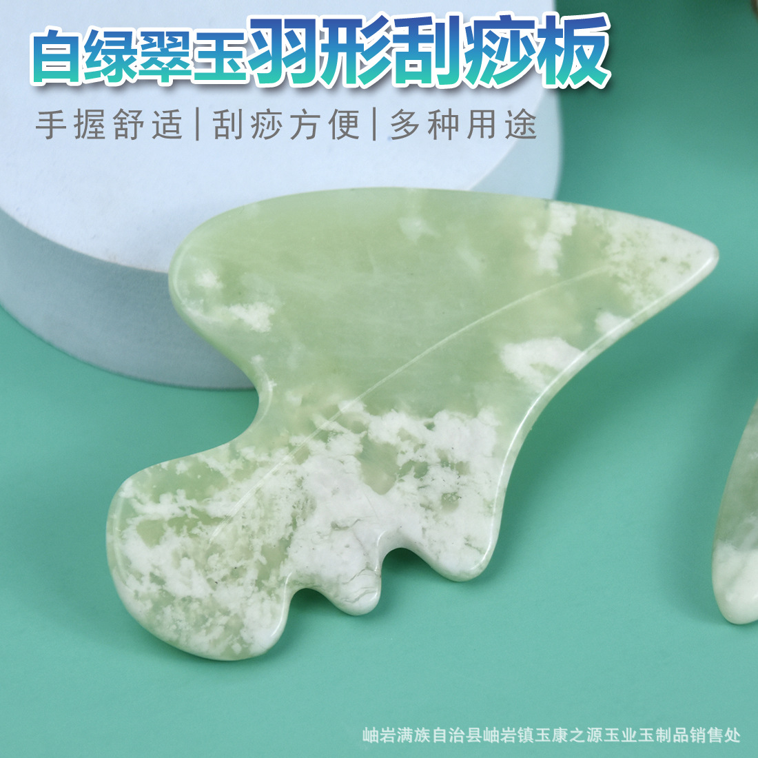厂家销售 岫玉刮痧板 翠玉羽形刮痧板多点按摩 美容脸部 全身刮痧