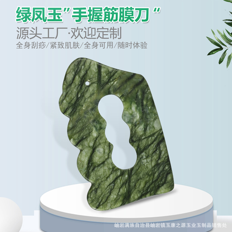 厂家销售 岫玉刮痧板 绿凤玉手握筋膜刀 玉石全身刮痧美容板