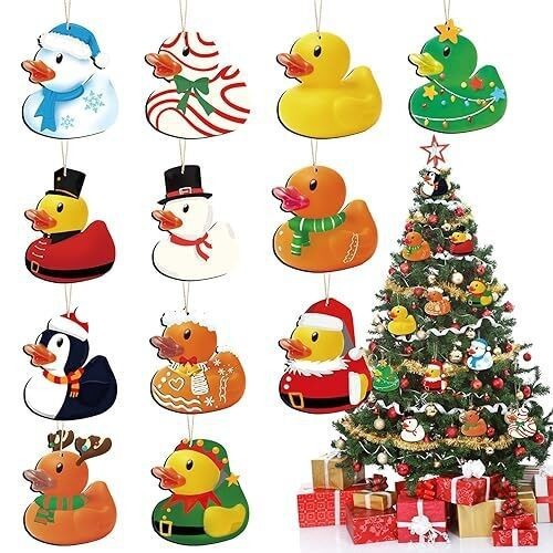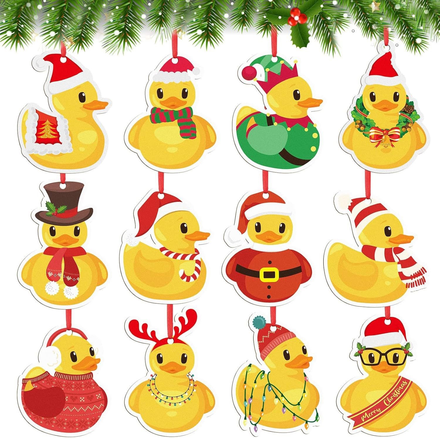 跨境12件套木制鸭子挂饰节日派对用品耐用的木质假日吊坠
