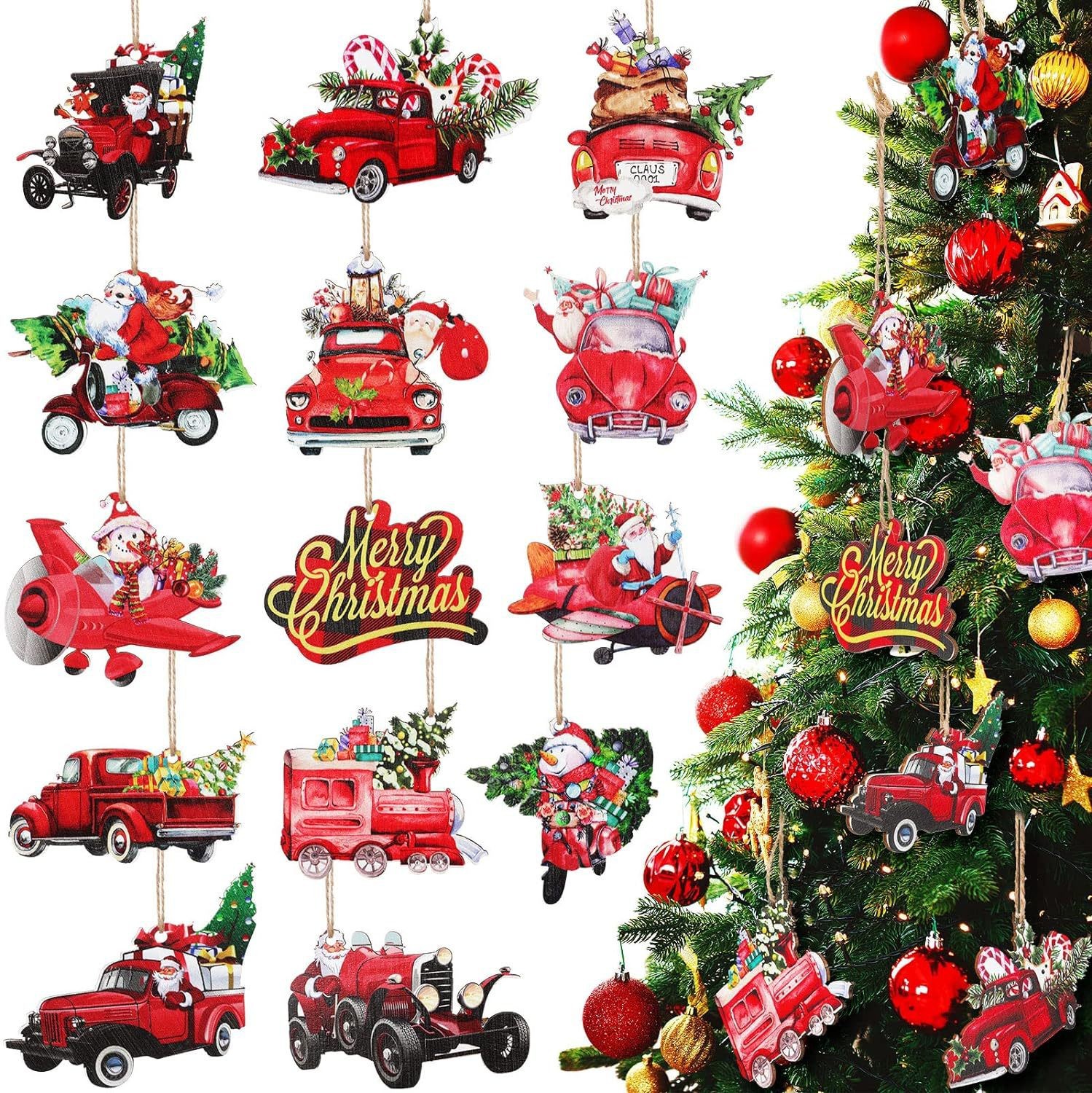 跨境木制圣诞装饰品红色卡车圣诞树挂饰悬挂家居派对圣诞树装饰品