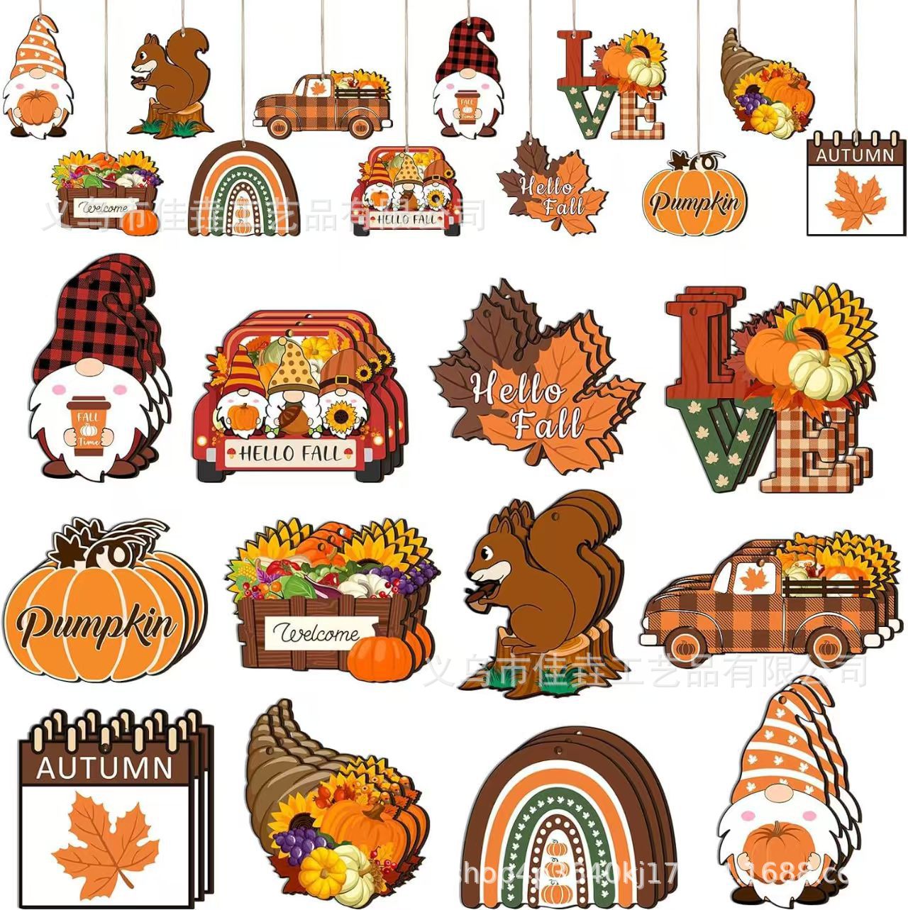 亚马逊跨境新品秋季感恩节创意木质挂件饰品感恩节南瓜松鼠挂饰