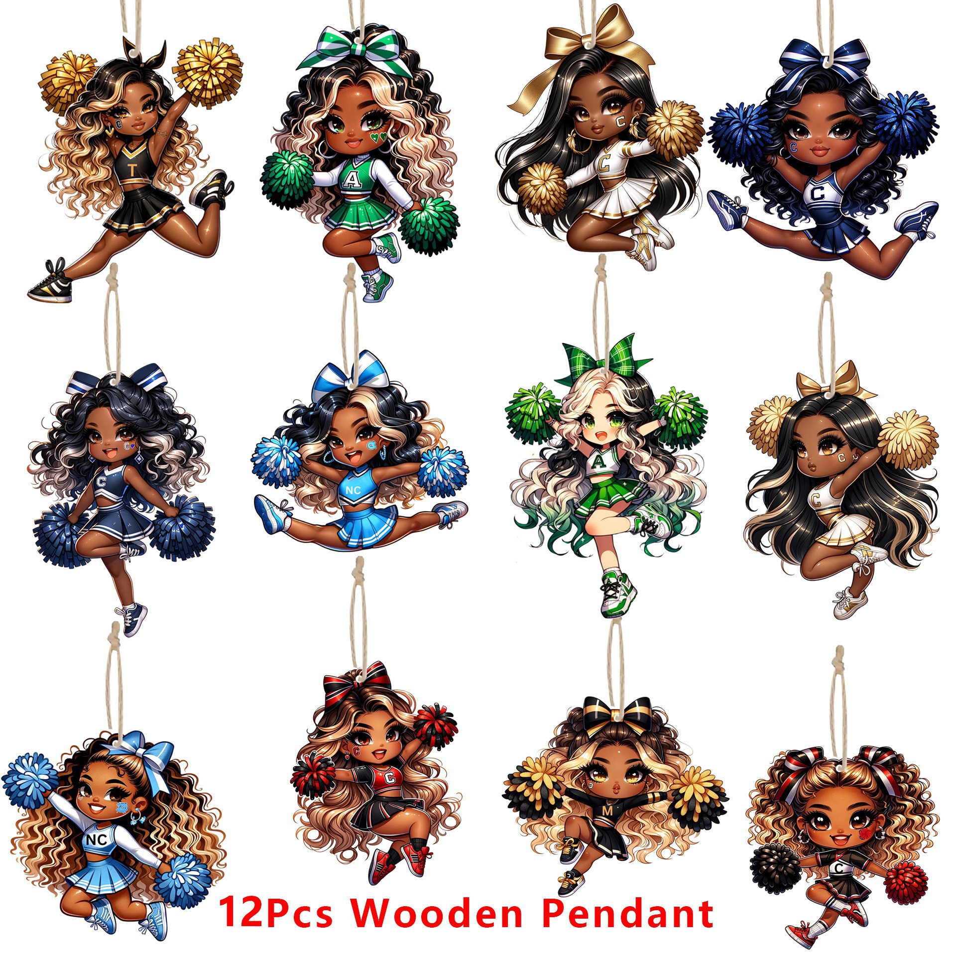 12件木制啦啦队挂饰套装迷人的体育赛事悬挂装饰橄榄球木制装饰品