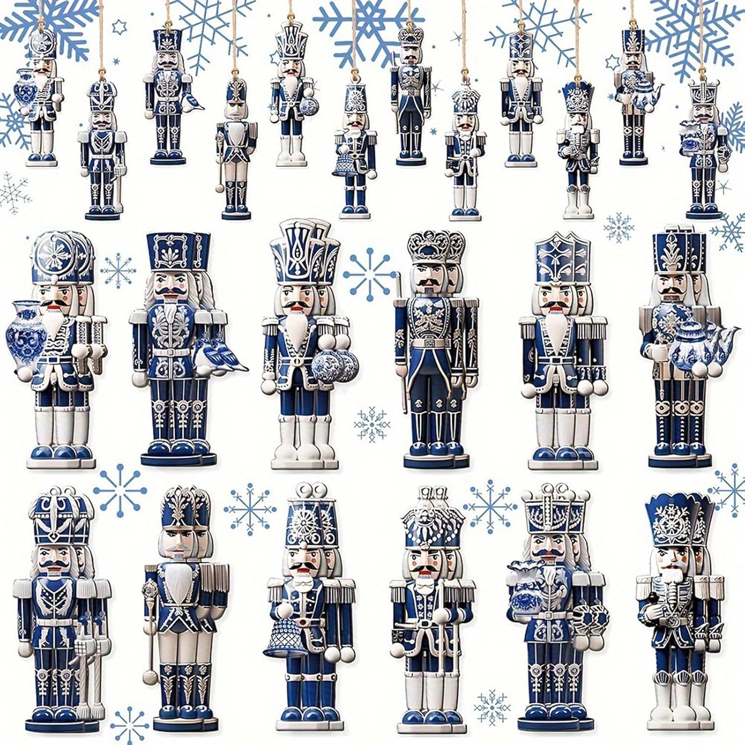 30件木制蓝白瓷圣诞胡桃夹子装饰挂件适用于各种节日派对装饰