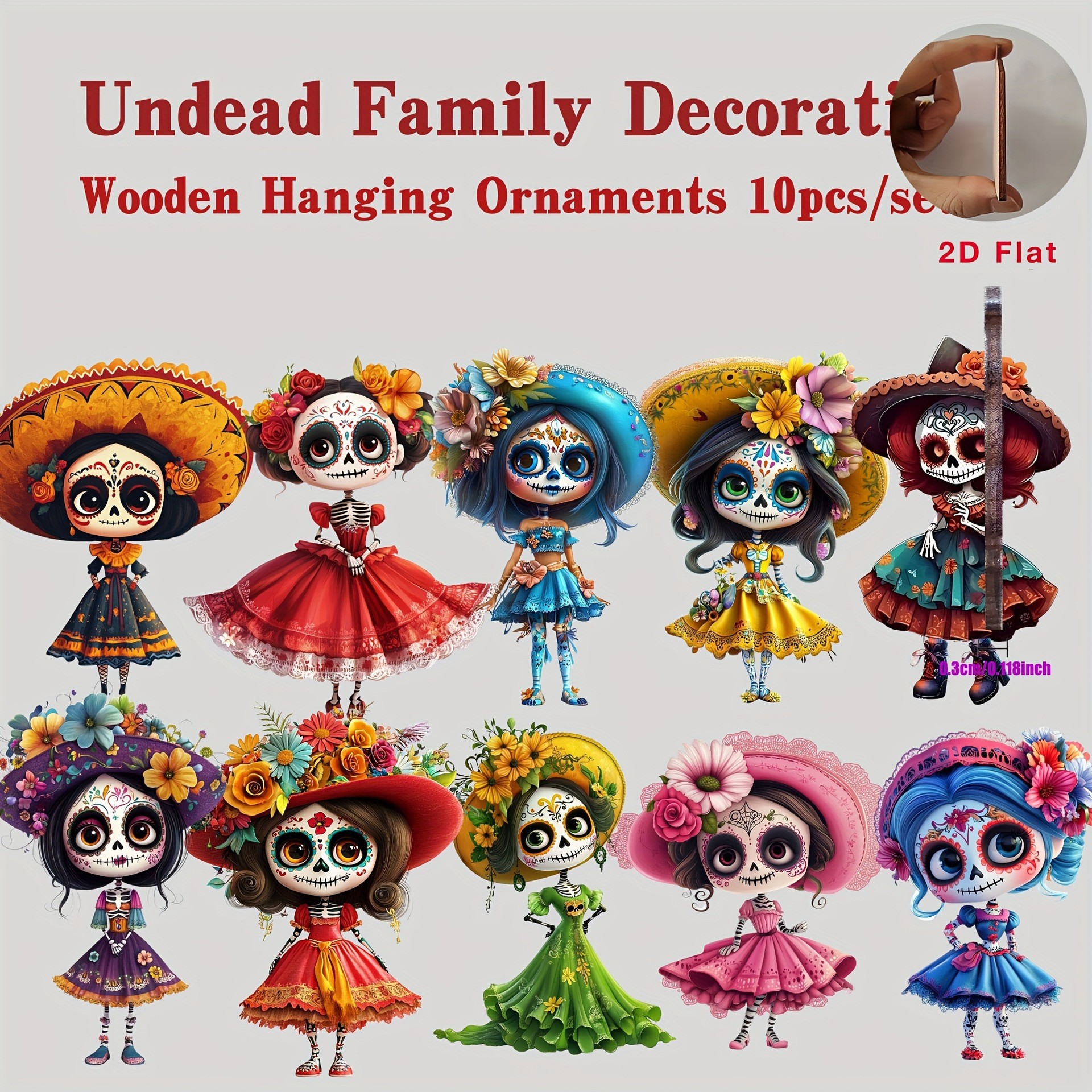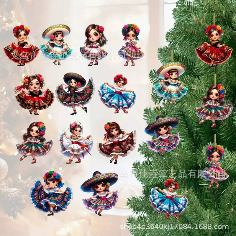亚马逊跨境新品48件节日派对狂欢跳舞女孩木质悬挂装饰品