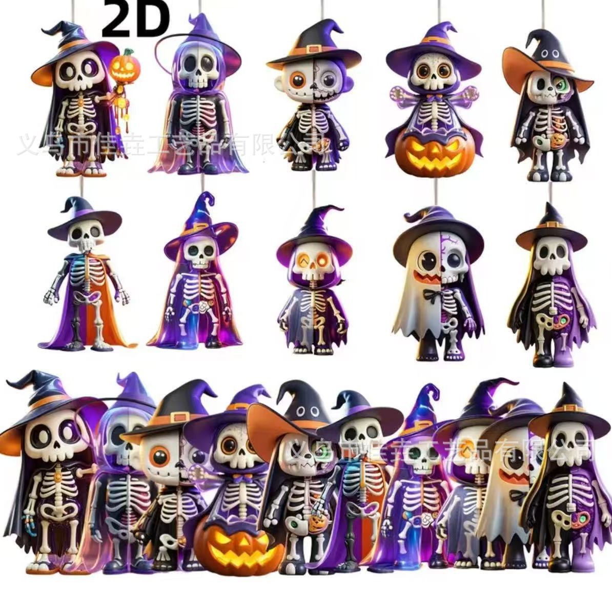 跨境新品万圣节主题骷髅骨夫妇亚克力挂件万圣节场景氛围装饰吊牌