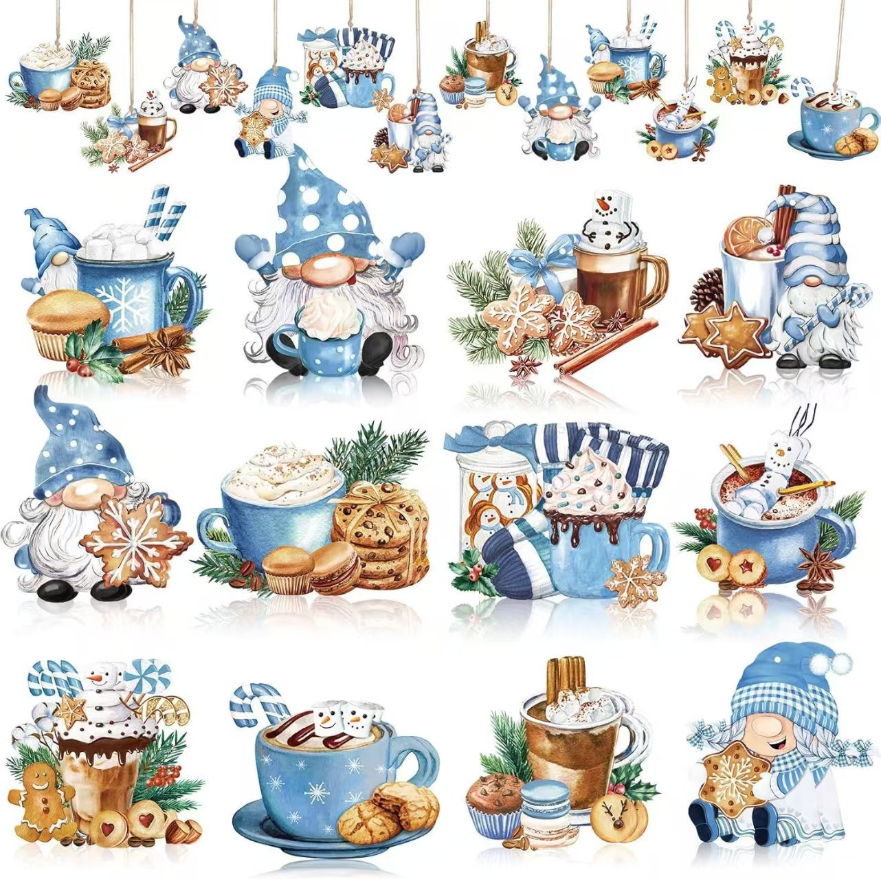 12件圣诞咖啡杯挂饰套装 可爱木制树挂装饰及迷你节日屋圣诞挂饰