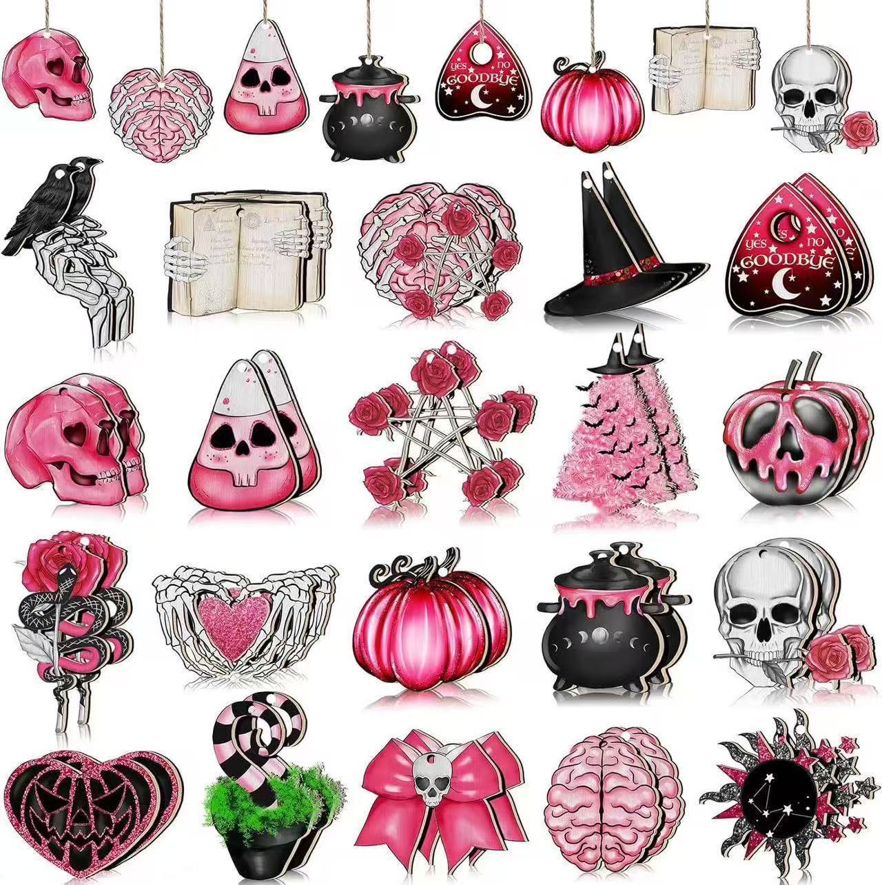 20件万圣节木质悬挂装饰万圣节创意粉色家居派对装饰挂件