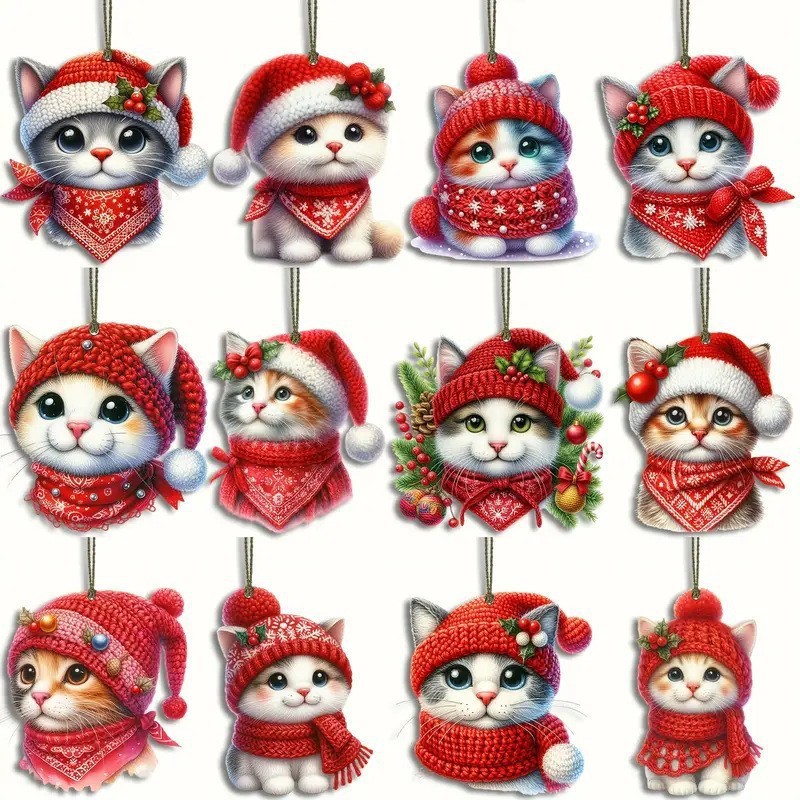 跨境新品24件可爱圣诞帽可爱猫咪主题家居装饰品 派对木质挂件