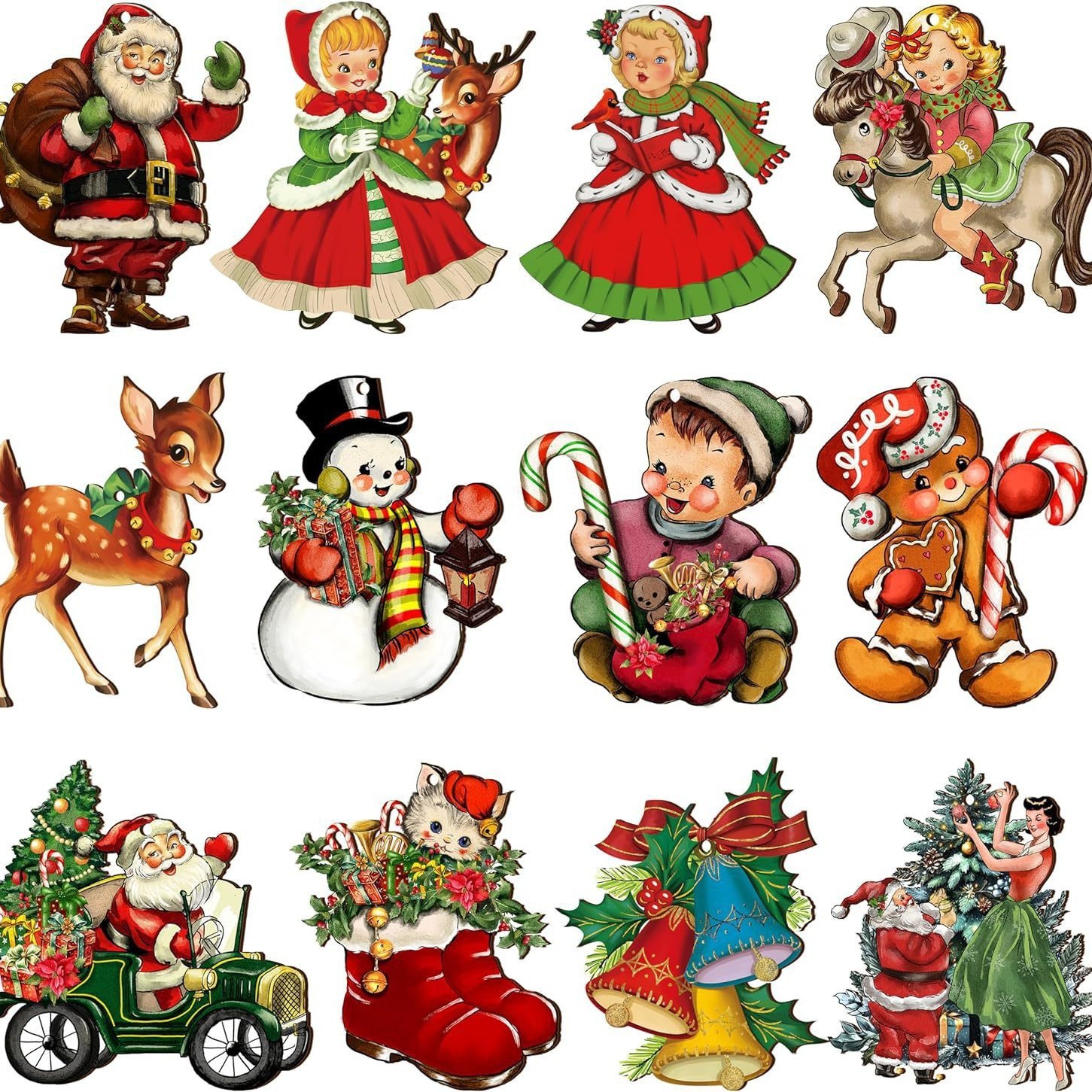12件复古风格木制圣诞树装饰品节日装饰用品适用于家庭派对装饰品