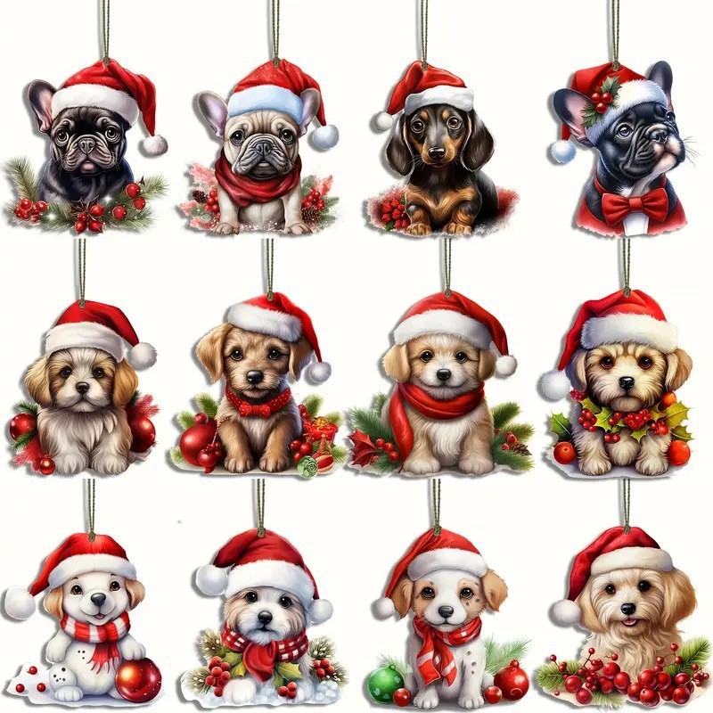 12件圣诞狗狗挂饰套装手工木制节日装饰礼物创意圣诞节派对挂件