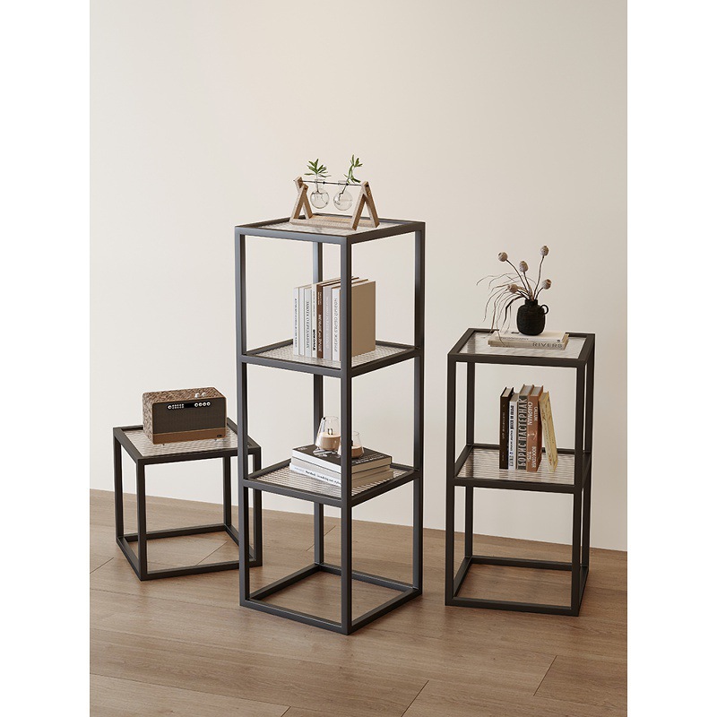 北欧简约铁艺置物架轻奢客厅多层收纳书架办公室隔断落地展示架子