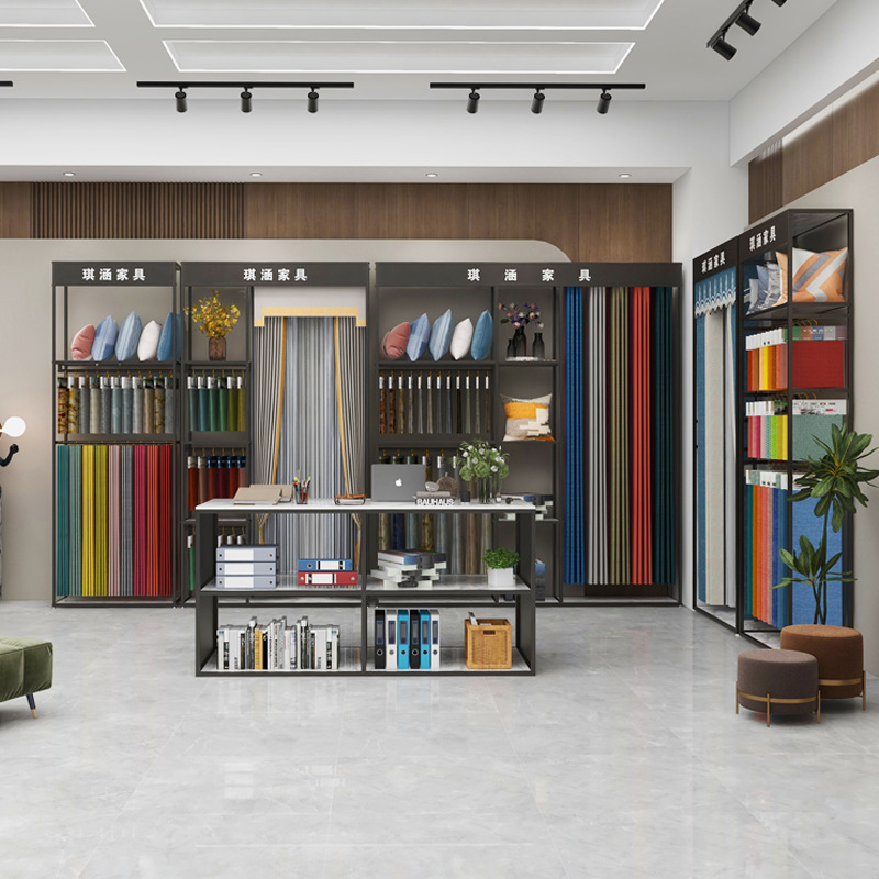 窗帘吊卡展示架抖音展架家纺布艺落地式布料样品色卡陈列架子展柜