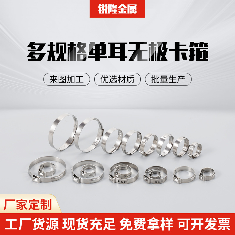 厂家供应不锈钢单耳卡扣一次性紧固件多规格金属材质单耳无极卡箍