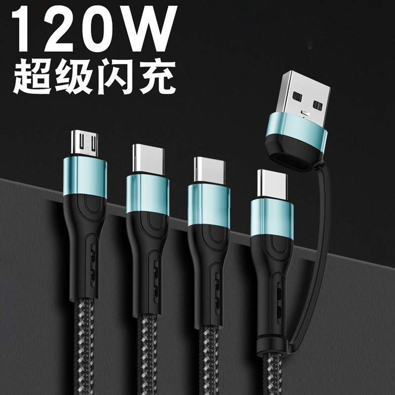 机甲编织6A四合一超级快充数据线二拖二PD27W刀王充电线风铝合金