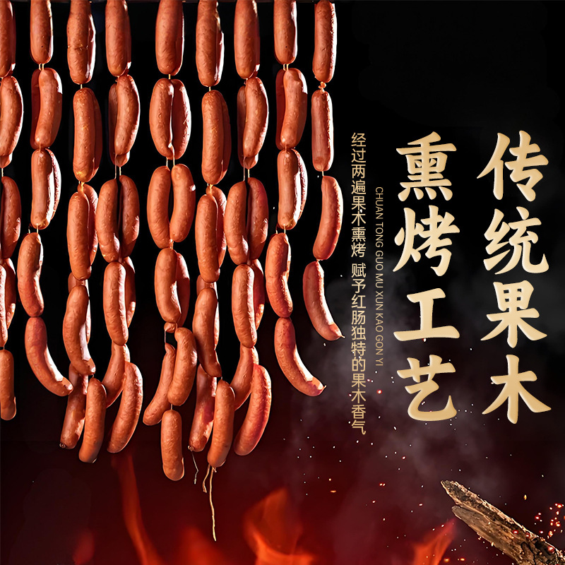 哈尔滨红肠生产加工蒜香风味香肠地摊熟食真空包装速食肠定制工厂