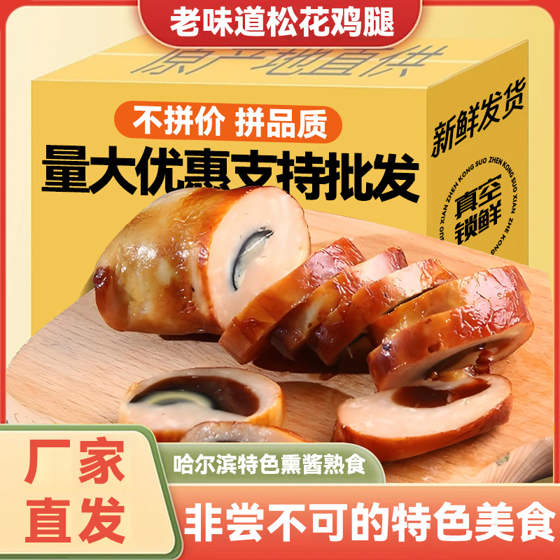 东北松花鸡腿肠可定制哈尔滨即食熏鸡腿熟食皮蛋肠卤味小吃OEM
