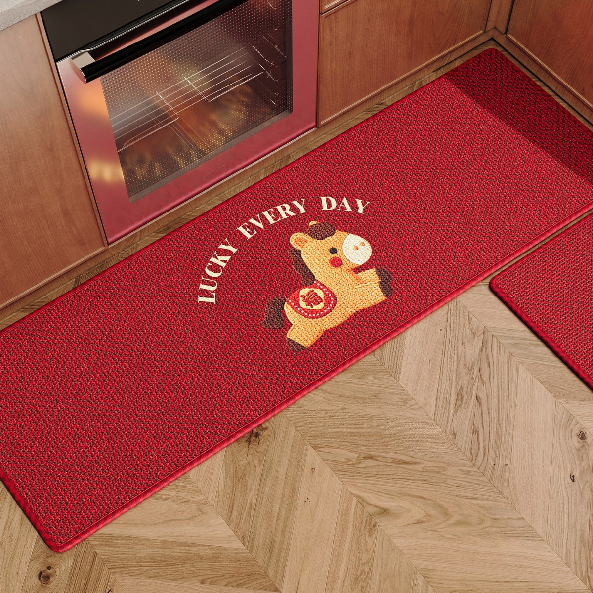 厨房专用地垫红色马年卡通家用免洗吸水速干擦脚垫除尘防滑垫地毯