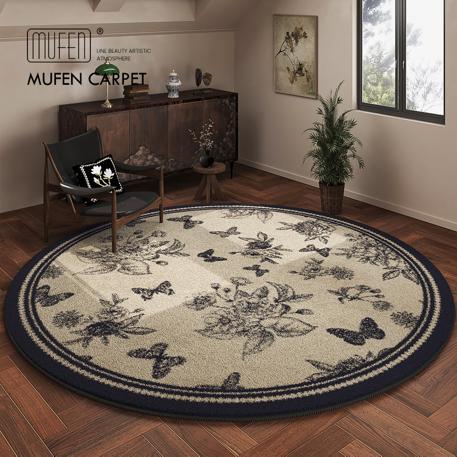 圆形客厅地毯卧室床边毯耐脏法式轻奢沙发茶几毯中古仿羊绒地垫