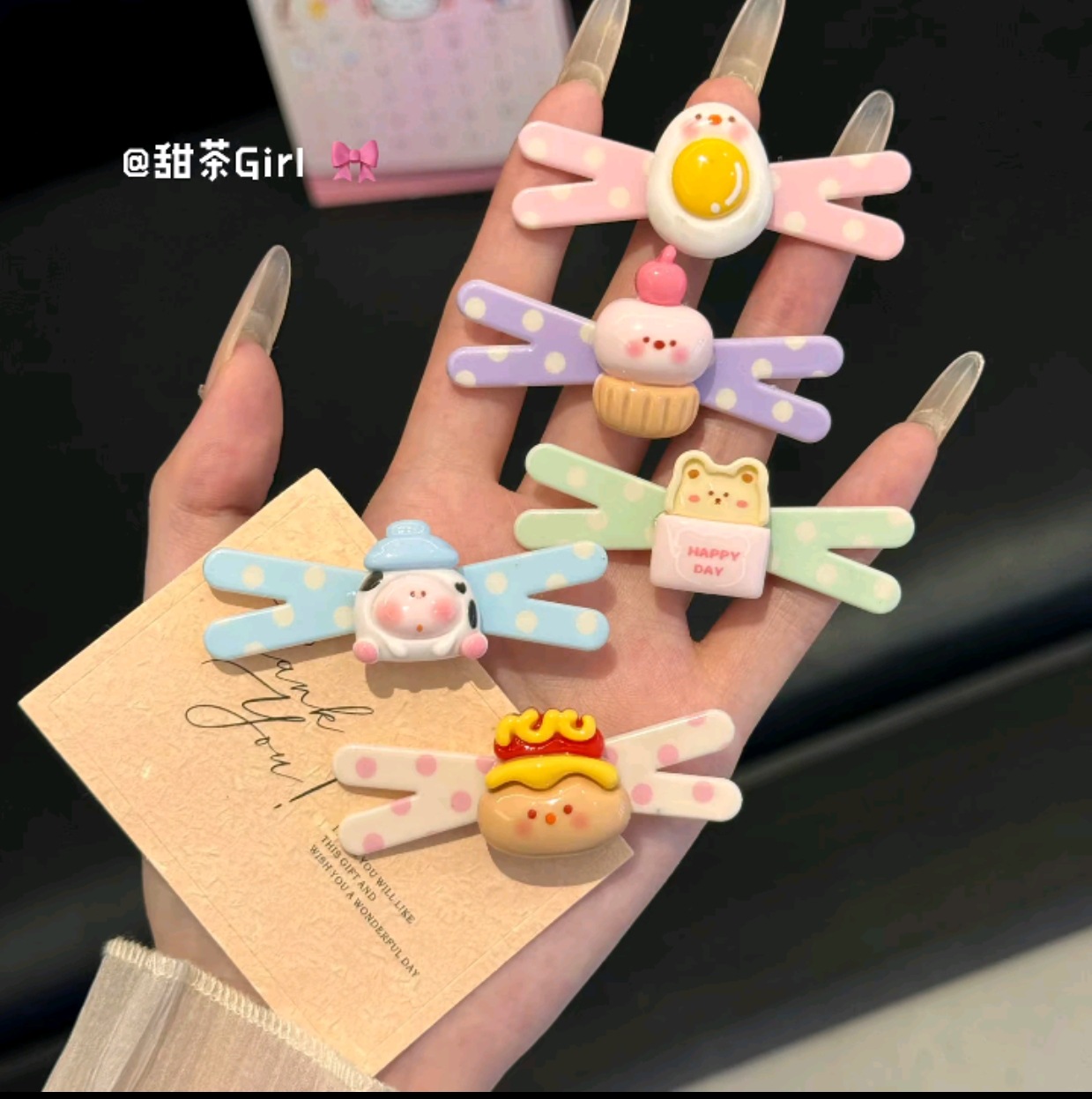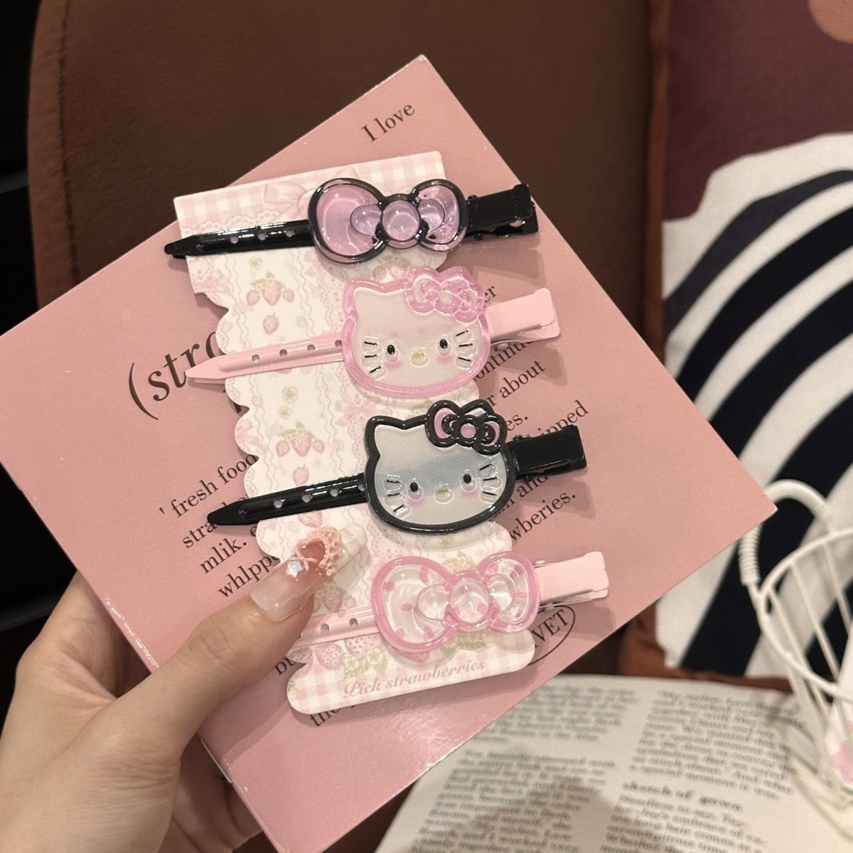 新款可爱透色KT猫发夹ins长款碎发刘海夹鸭嘴夹边夹少女发卡发饰