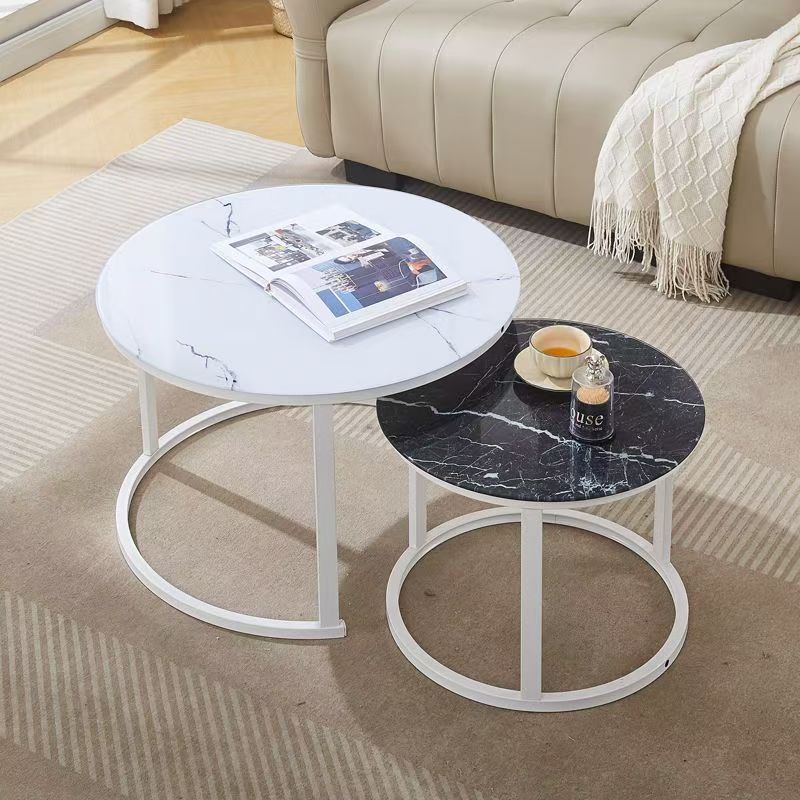 茶几小户型圆形桌面网红茶几北欧简约创意圆形组合铁艺茶几批发