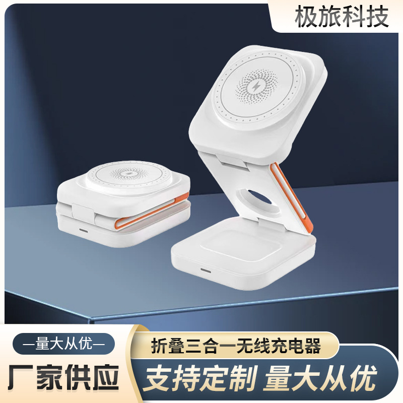 跨境可定制三合1多功能折叠磁吸无线充适用苹果手机桌面无线快充