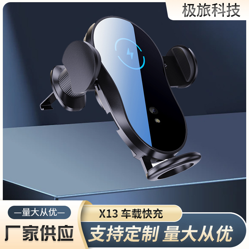 跨境新款X13车载无线充手机支架快充自动感应电动充智能感应磁吸