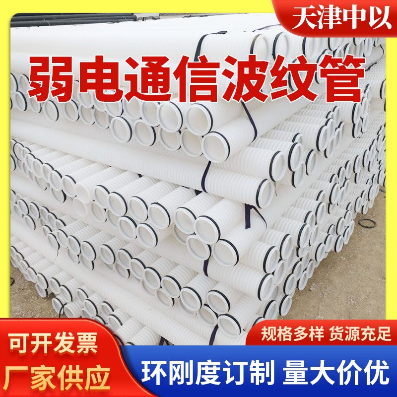 白色双壁波纹管生产厂家 打孔渗水缠布排盐管 PE通讯波纹管