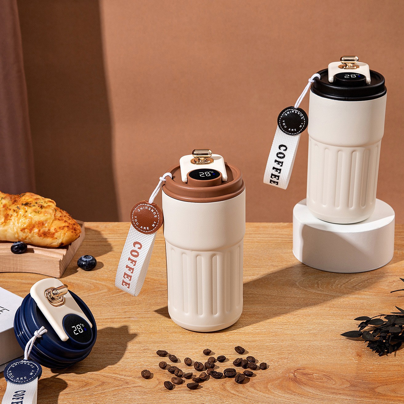 2025智能杯子显温316不锈钢保温杯高顔值咖啡杯带提绳便携水杯