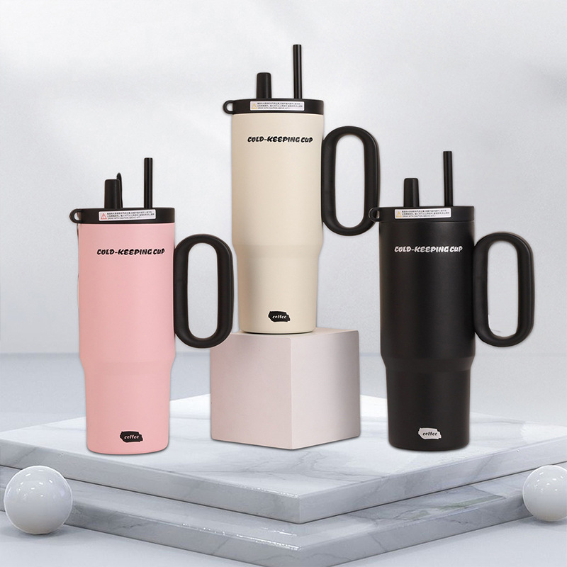 跨境车载冰霸杯便携不锈钢水杯吸管杯大容量手柄保温杯车载便携