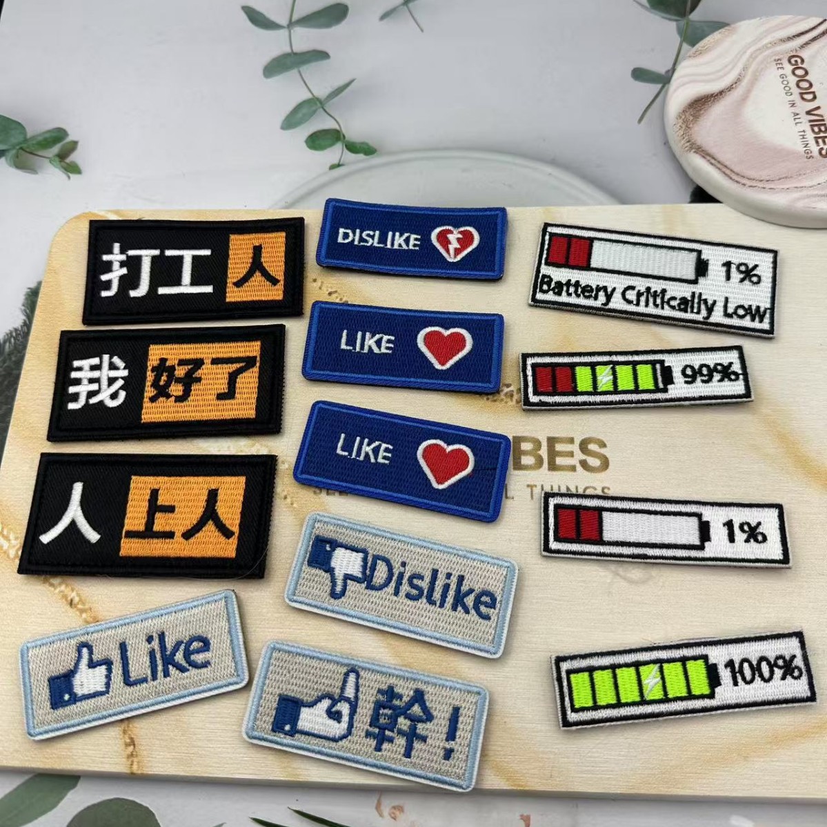 长条形刺绣魔术贴章个性徽章DIY缝纫英文补丁布贴户外包