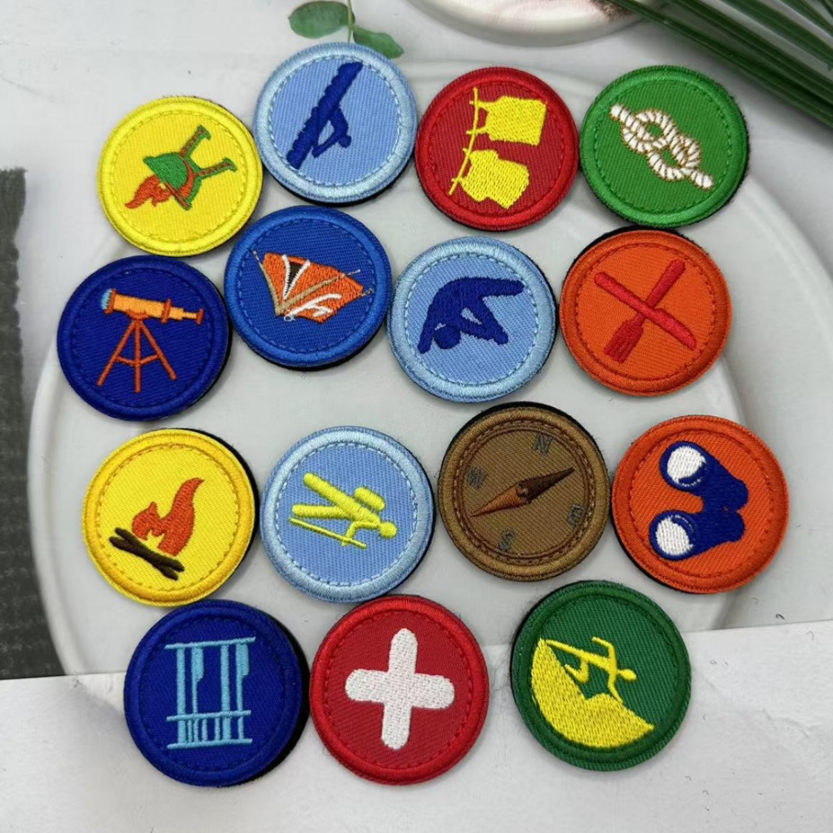 电脑绣花标服装辅料电脑刺绣补丁,卡通圆形童子军魔术贴徽章刺绣