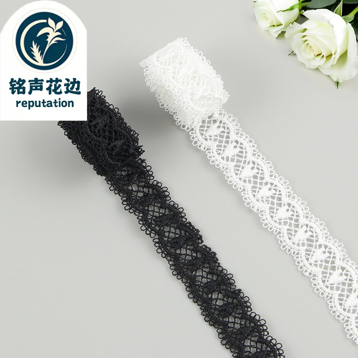特推6公分大玫瑰花 窗帘花边涤光条码 DIY刺绣服装辅料花边水溶