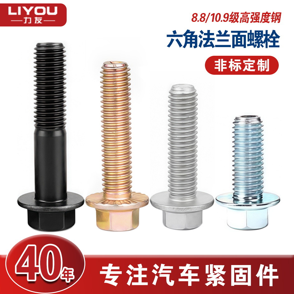 定制碳钢六角法兰面螺栓高强度螺丝8.8/10.9级磷化/镀锌/达克罗/