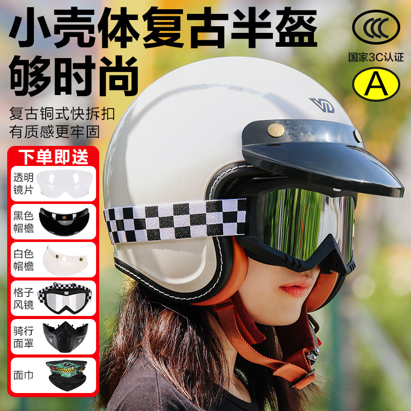 威帝新国标3C认证复古巡航电动车摩托车男女机车头盔安全骑行半盔