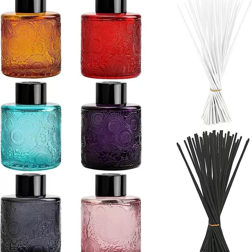 彩色无火香薰瓶DIY藤条干花挥发浮雕香薰香氛扩香分装玻璃瓶