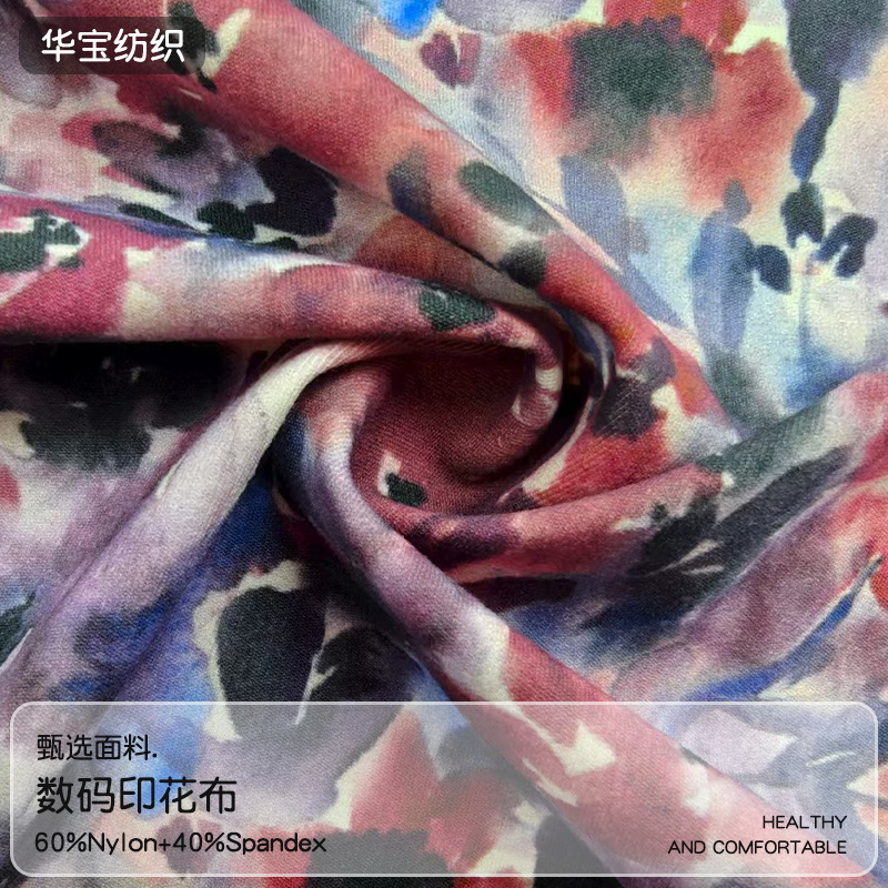 数码印花布 60%Nylon+40%Spandex细腻光滑泳衣瑜伽服服饰面料