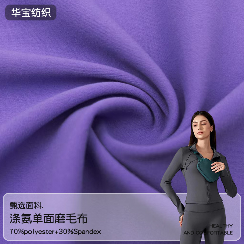 色彩鲜艳涤氨单面磨毛布 70%polyester+30%Spandex服饰纺织面料