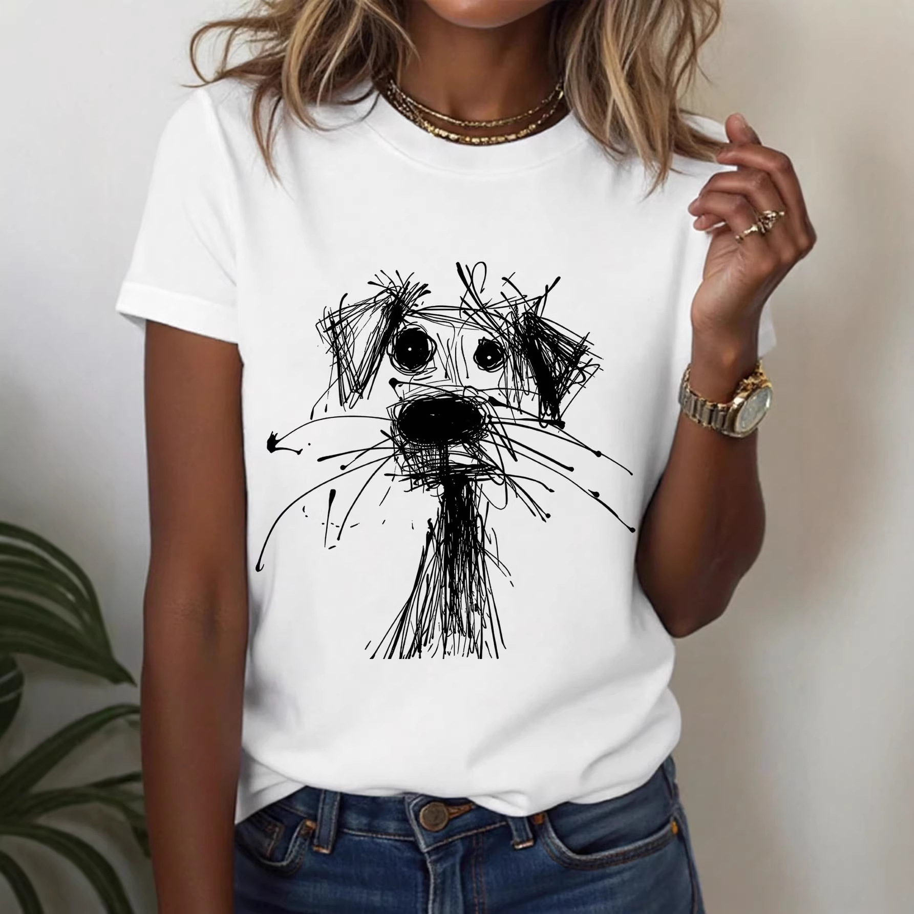 欧美外贸春秋新款亚马逊独立站热售小碎花印花圆领七分袖宽松T恤