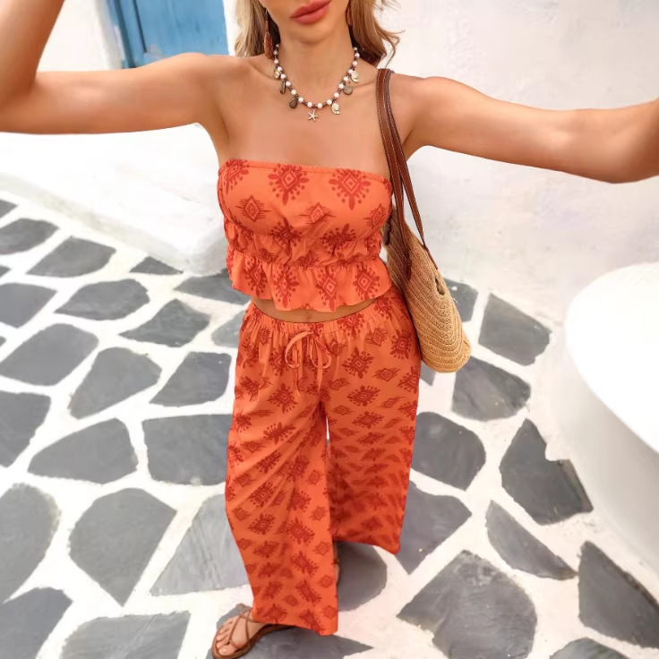 欧美外贸女2026亚马逊热售抹胸露背性感辣妹沙滩度假休闲长裤套装