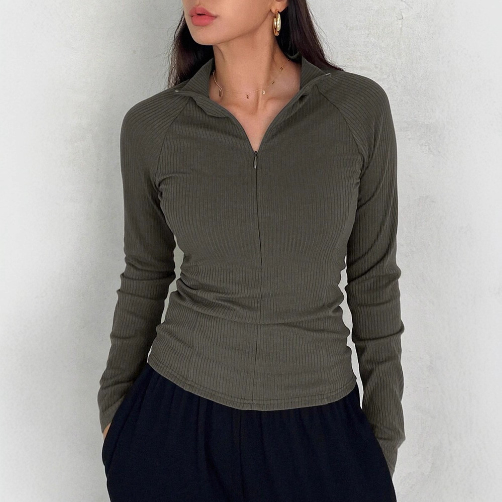 欧美外贸亚马逊秋冬女装新款时尚拉链长袖修身显瘦保暖针织衫外套