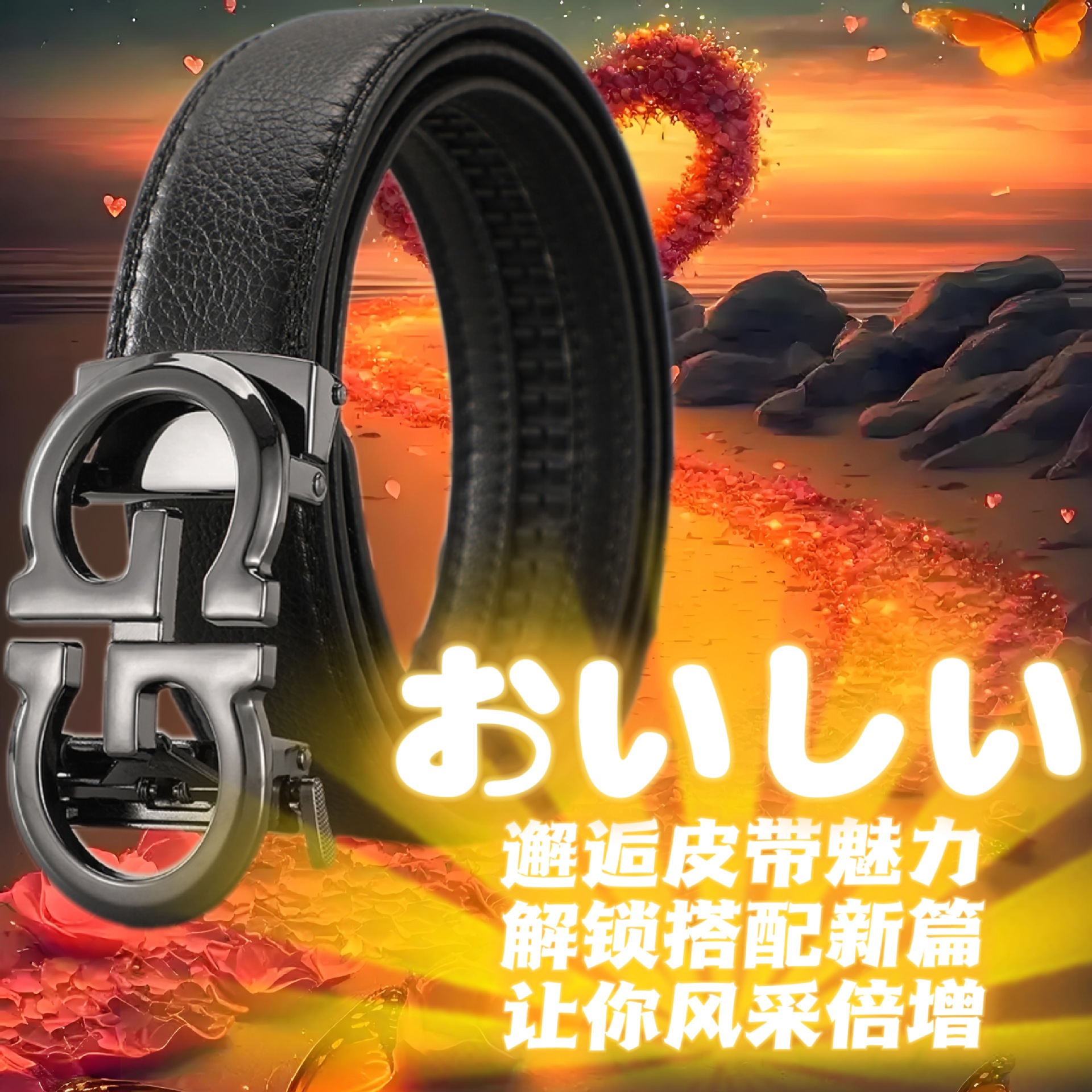 【】直播男士牛皮皮带自动扣真皮腰带中青年商务百搭商务轻奢风