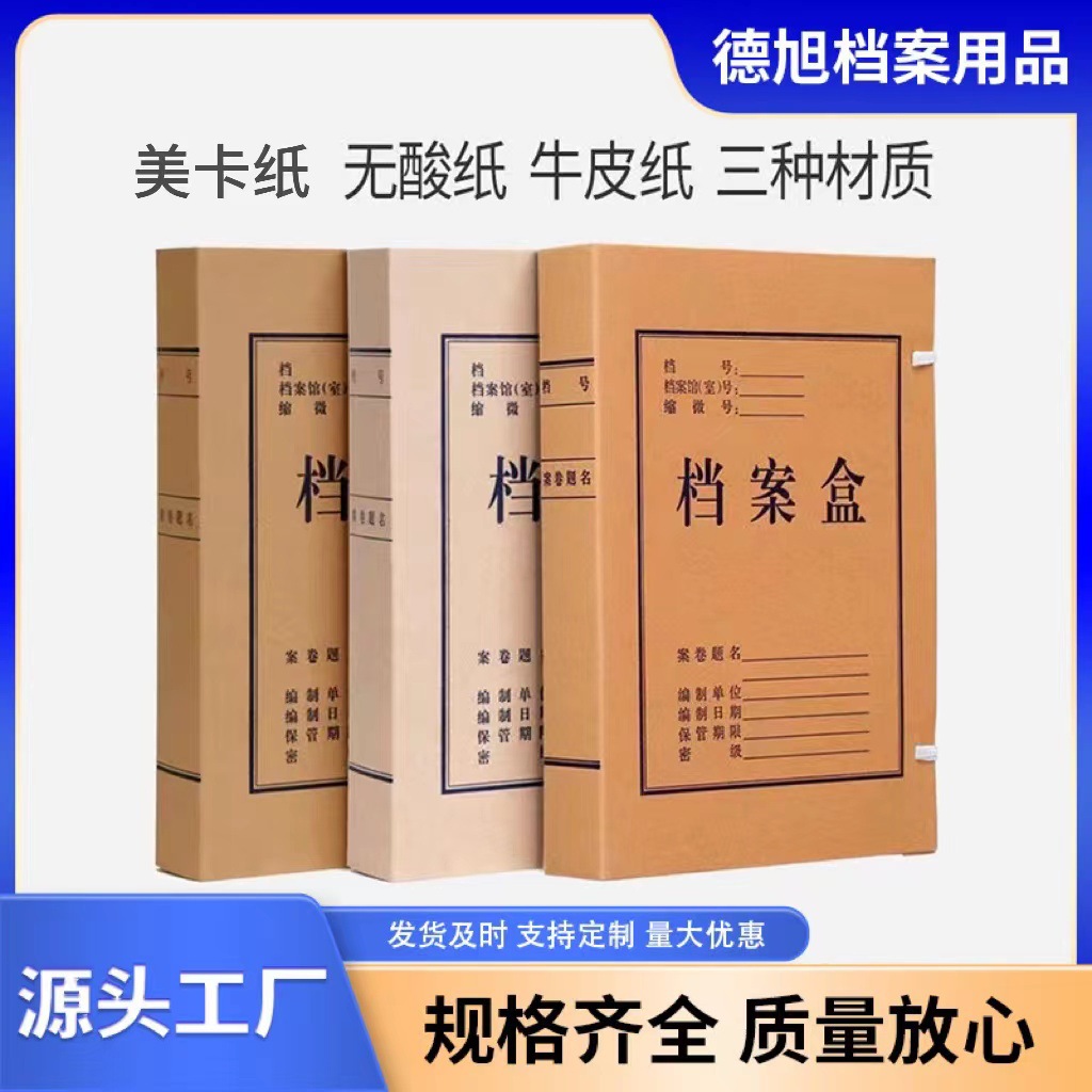 厂家大量批发牛皮纸档案盒科技文书盒无酸纸档案盒A4文件盒凭证盒
