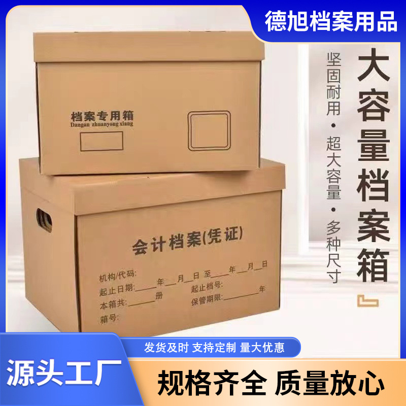 厂家批发牛皮纸无酸纸档案盒加厚大容量凭证文件资料收纳盒