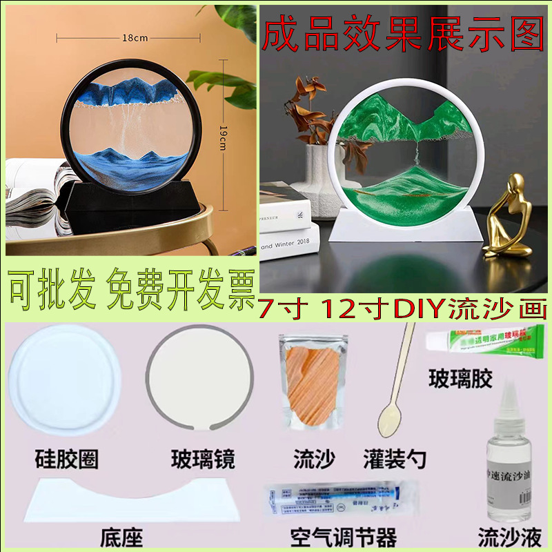 工厂直销流沙画玻璃工艺品全套配件装饰沙漏7寸-12寸胶圈底座批发
