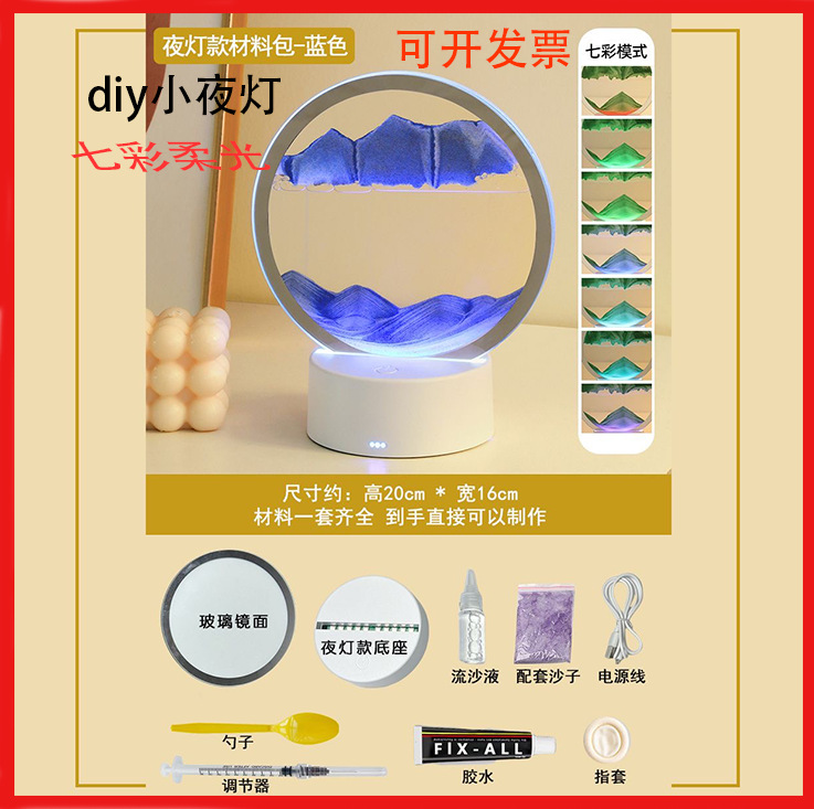 跨境批发3D流沙画小夜灯动态沙漏摆件生日礼物送礼家居桌面办公桌