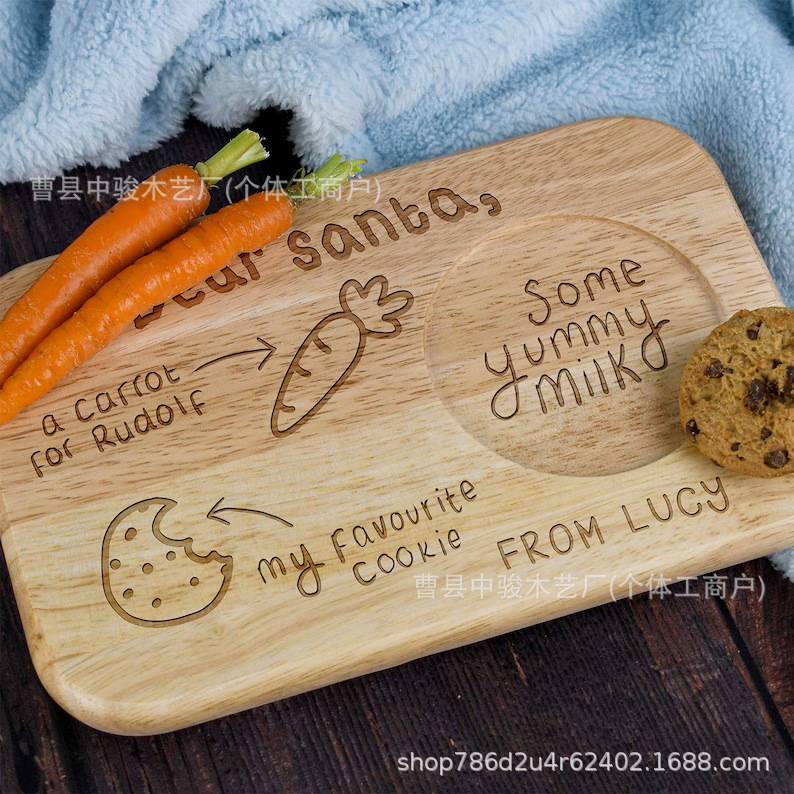 木制平安夜托盘方形实木圣诞老人面包牛奶早餐盘下午茶点心蛋糕盘