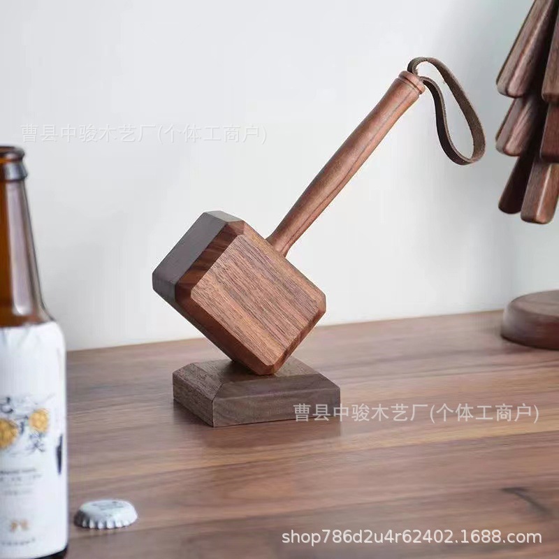 跨境家居摆件实木啤酒起子木制启瓶器创意雷神之锤开瓶器带手柄